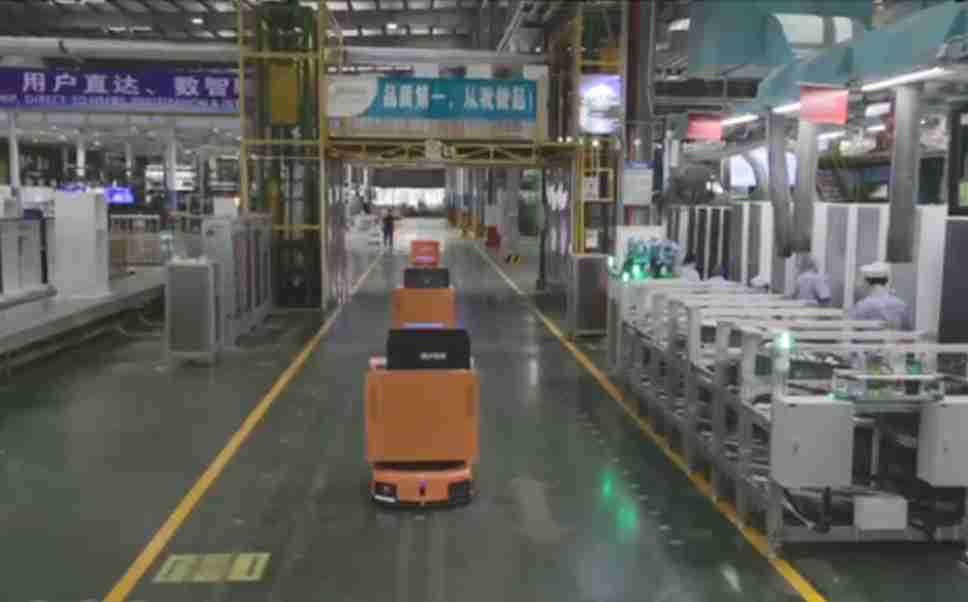 为车载冰箱物流配送打造的智能解决方案,,包含产中物流通过潜伏举升AMR搬运至线边,,产后成品物流智能仓储,,,流程包含产中物流智能齐套入库,,线边安灯叫料AMR智能配送至线边,,,成品入库、、出库,,通过无人堆高车机器人,,智能仓储管理替代人工作业管理,,实现更高存储、、更高效率、、更具柔性化的解决方案。。。。